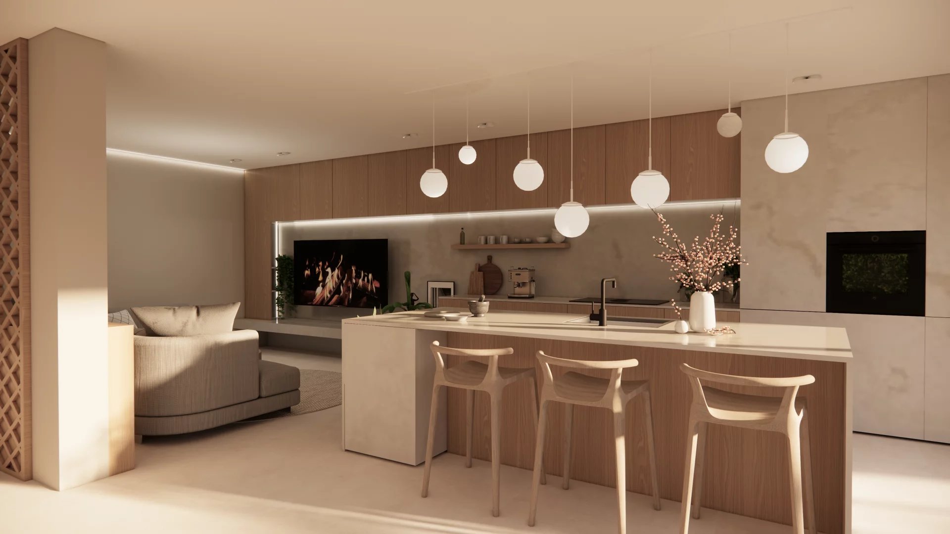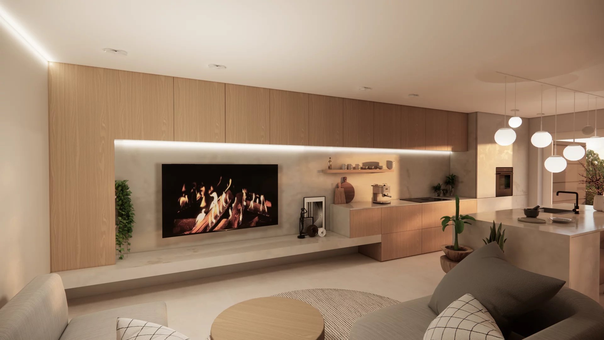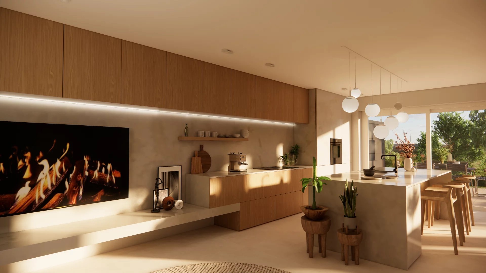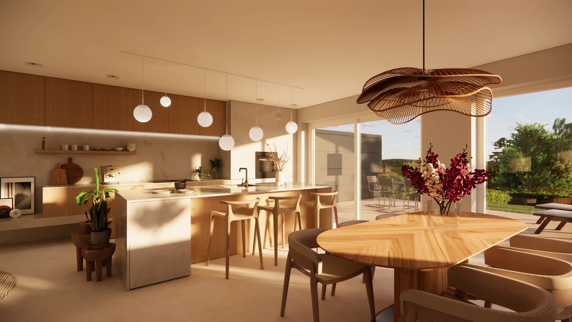 • Rez-de-jardin : Spacieux séjour avec cuisine ouverte donnant accès à la terrasse et au jardin, WC séparé, Local technique/cave, buanderie.