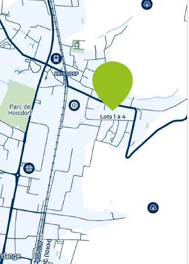 Le pin indique l’endroit au Grand-Duché de Luxembourg où se situe l’objet que vous êtes en train de regarder. Vous pouvez zoomer pour avoir une vue plus précise ou dézoomer pour une vue plus globale de l’endroit où se situe l’objet en question.