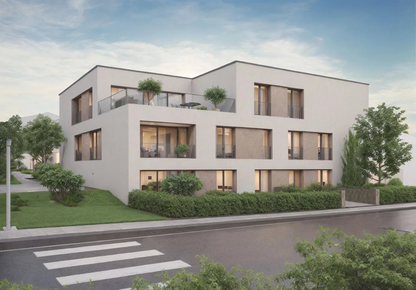 For sale a magnificent flat (N°01 / Resid. RUMA) on the ground floor of a new residence to be built in the ‘An de Strachen’ housing estate in Helmsange, commune of Walferdange with easy access to the commune's local amenities, shops, restaurants, sports centres as well as the PIDAL etc..