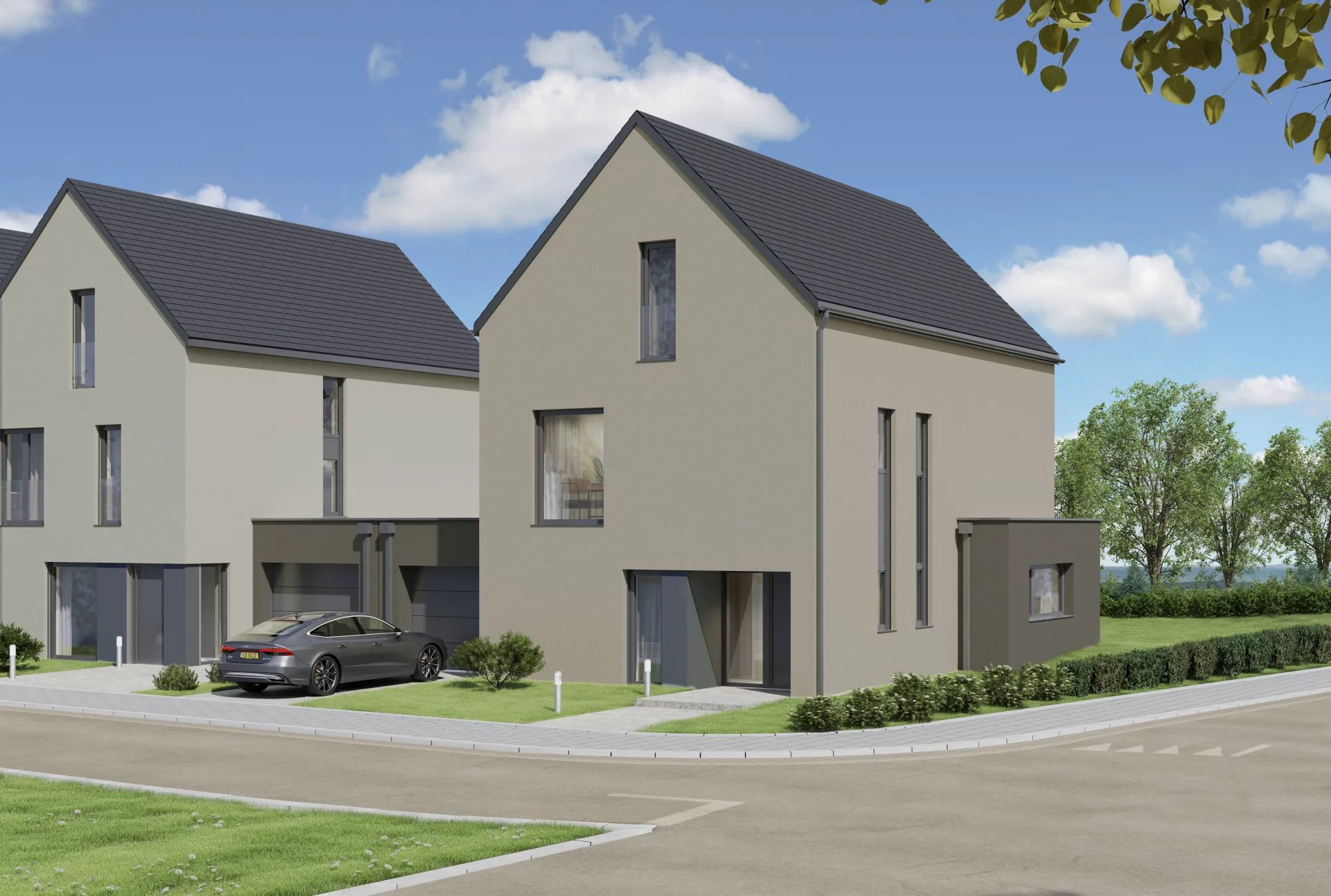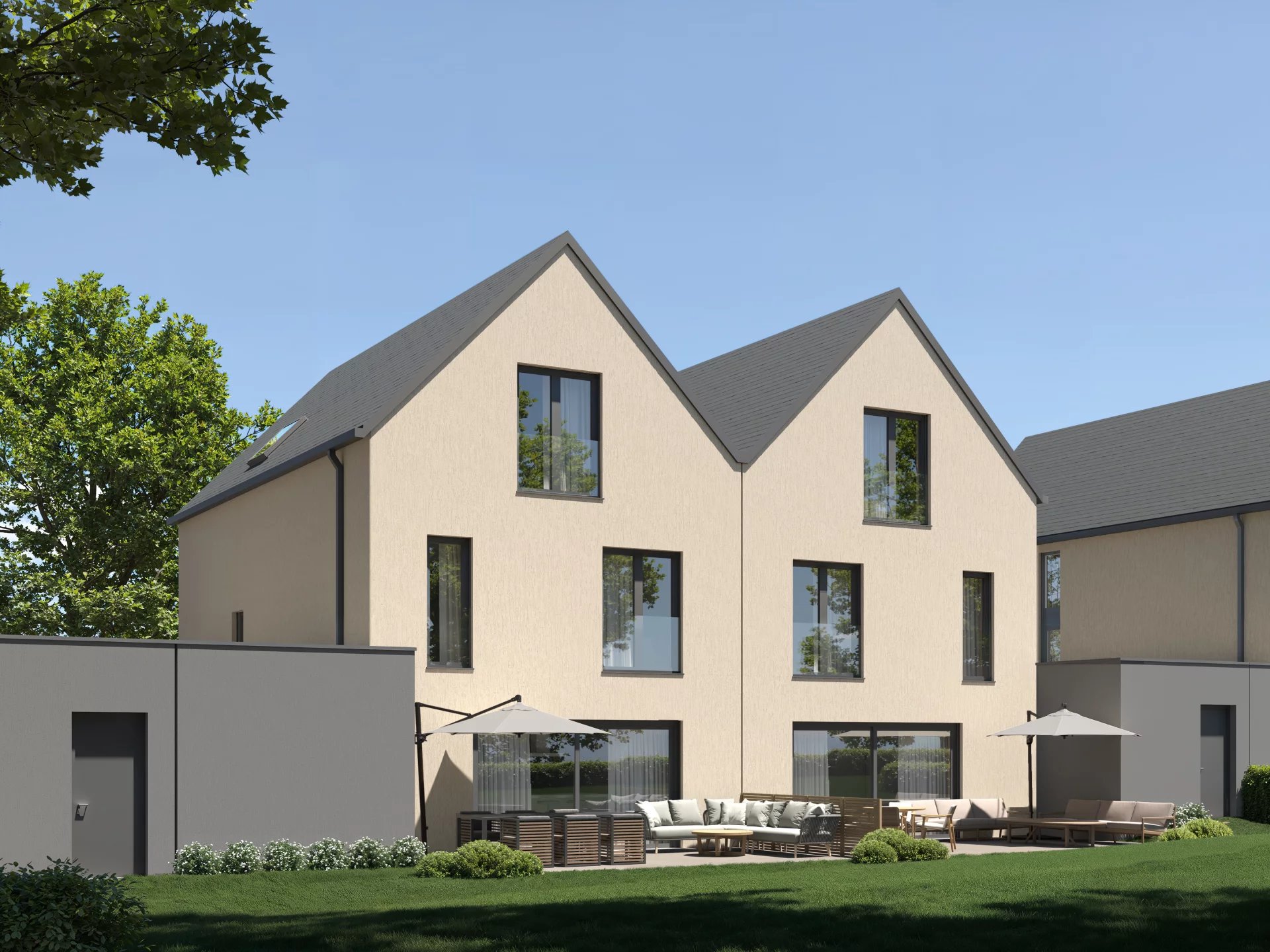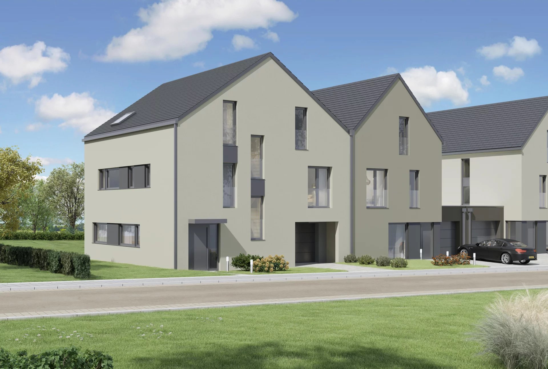 Beautiful single-family house free on 3 sides (Lot 01 / PROJECT AUTHORIZED) in future construction to NZEB (Nearly Zero Energy Building) located on a plot of + / - 4.23 ares in a cul-de-sac on the outskirts of the town of Sandweiler, rue des champs.